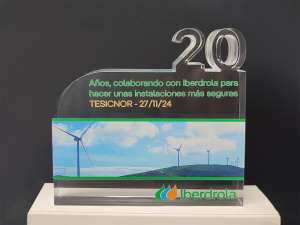 La colaboración de más de veinte años entre Tesicnor e Iberdrola en el ámbito de la Prevención de Riesgos Laborales ha llevado a la multinacional eléctrica a rendir homenaje a nuestra empresa por “su gran labor en la seguridad de nuestras instalaciones y el compromiso con la protección de nuestro personal”.